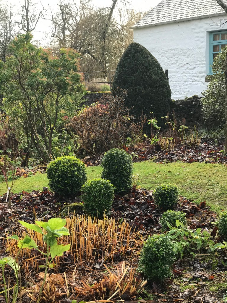 That said I do have a rather fine clipped yew along with some smaller box specimens. But their smooth outlines are really there to enhance the general unshorn look of things that surround them.