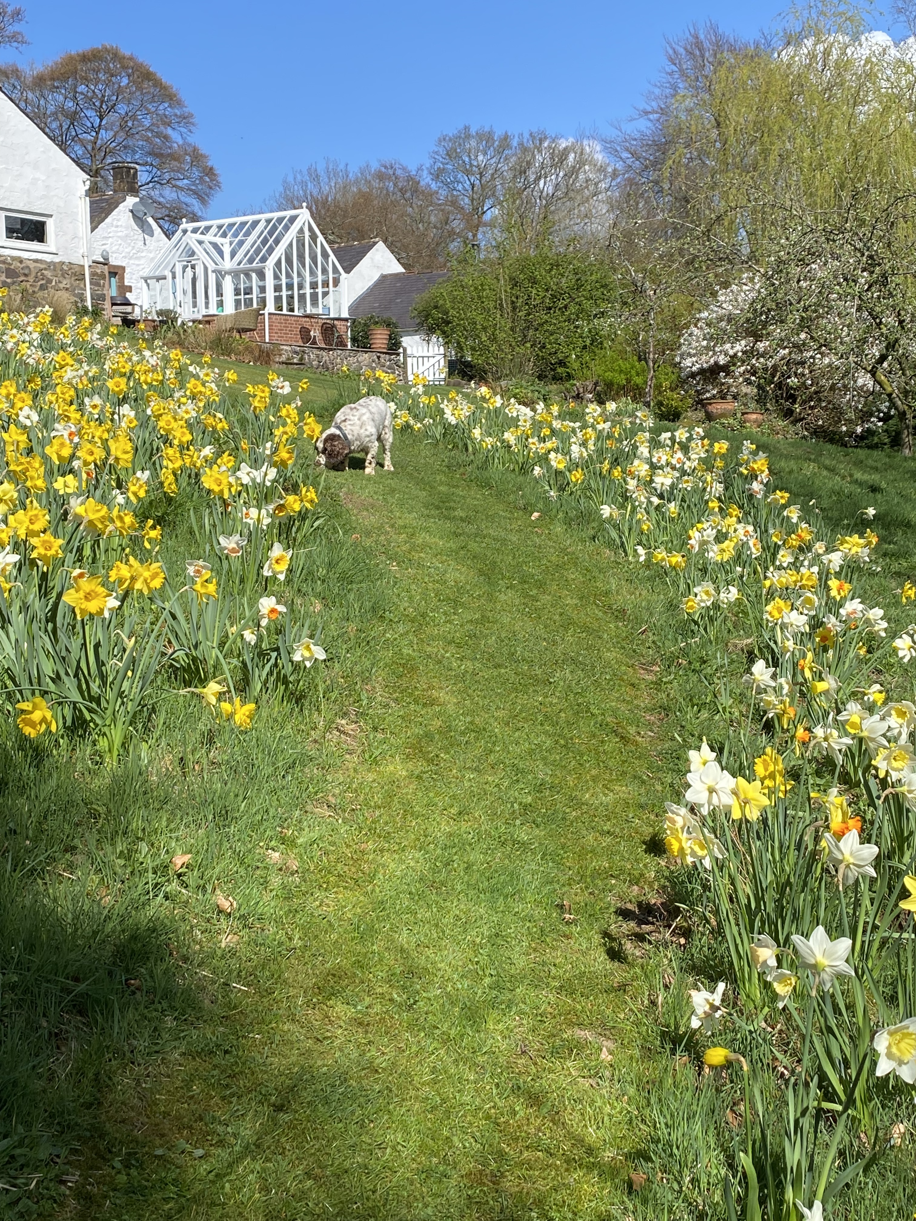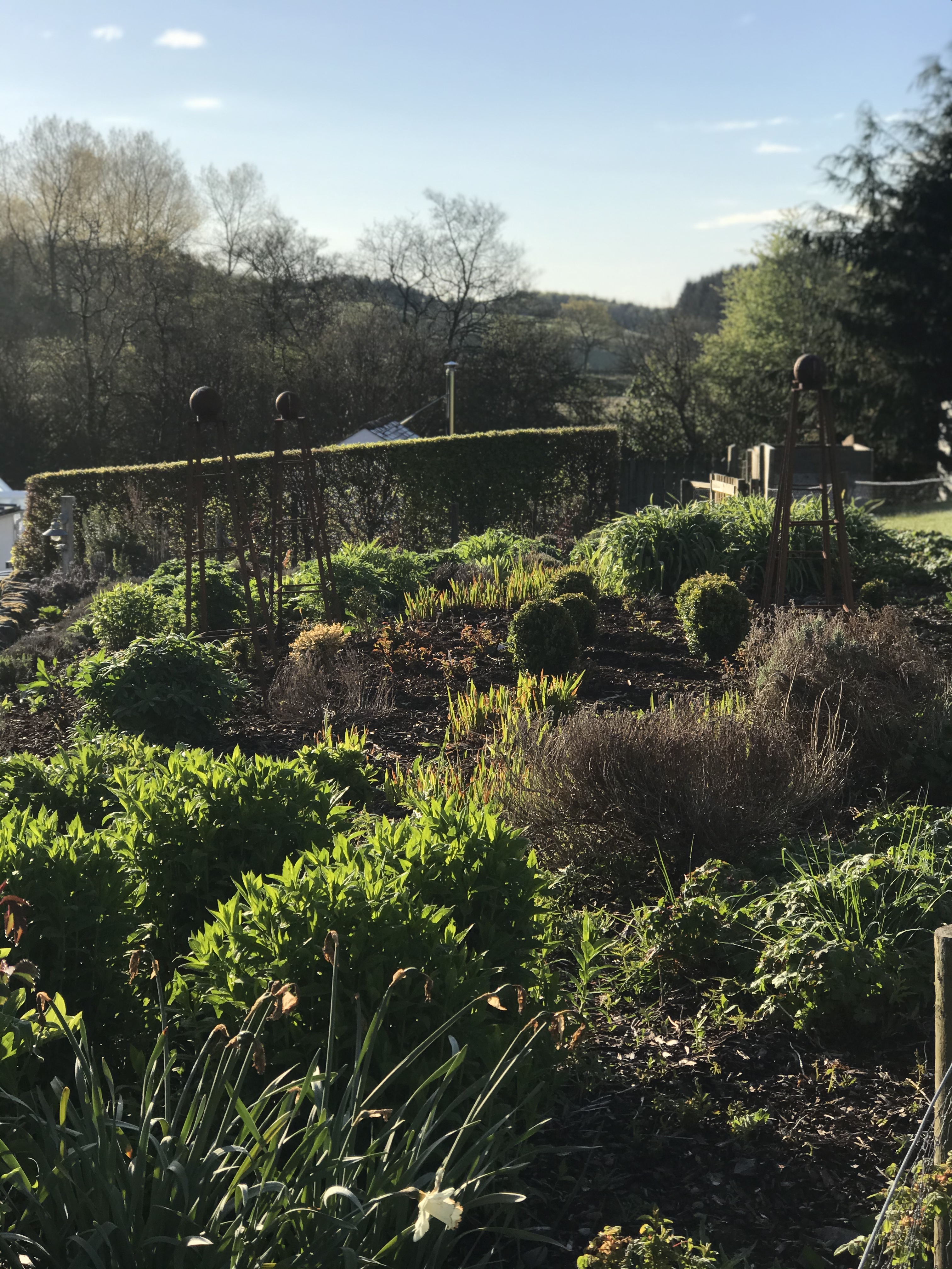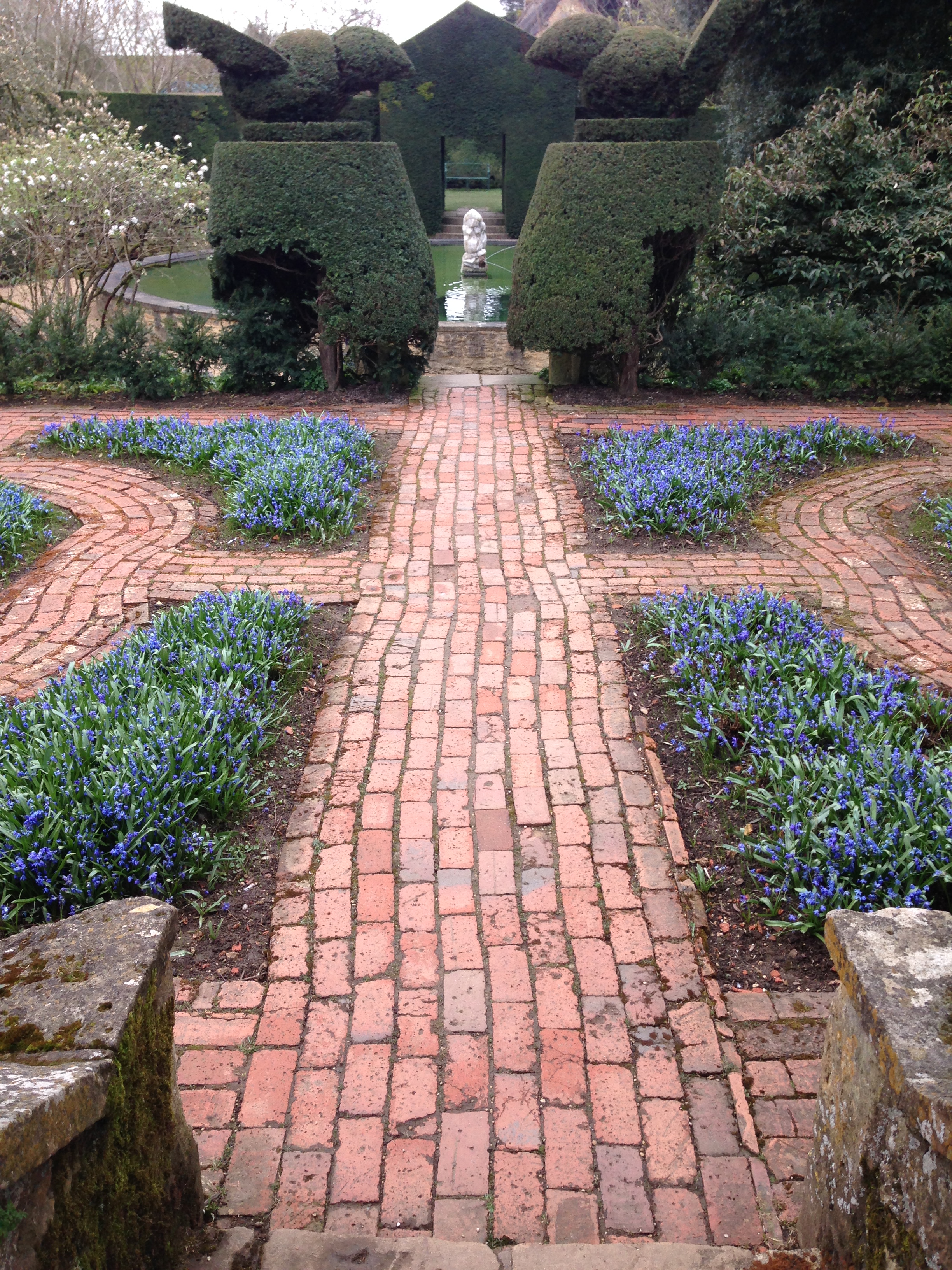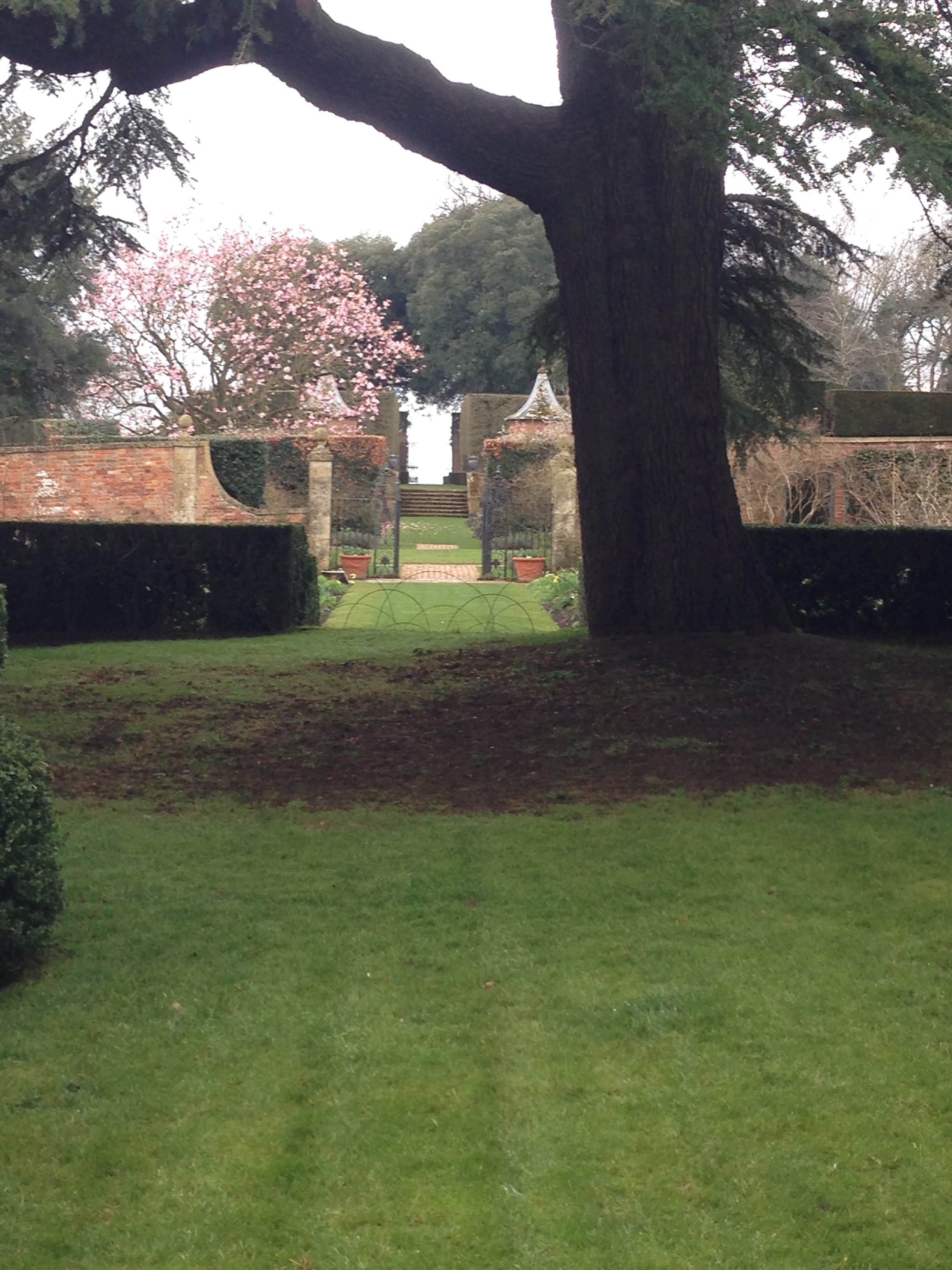 There is much restoration in progress near the house, so some of the beds look messy, though there are spring bulbs and some blossom. But the overall effect remains completely inspiring.