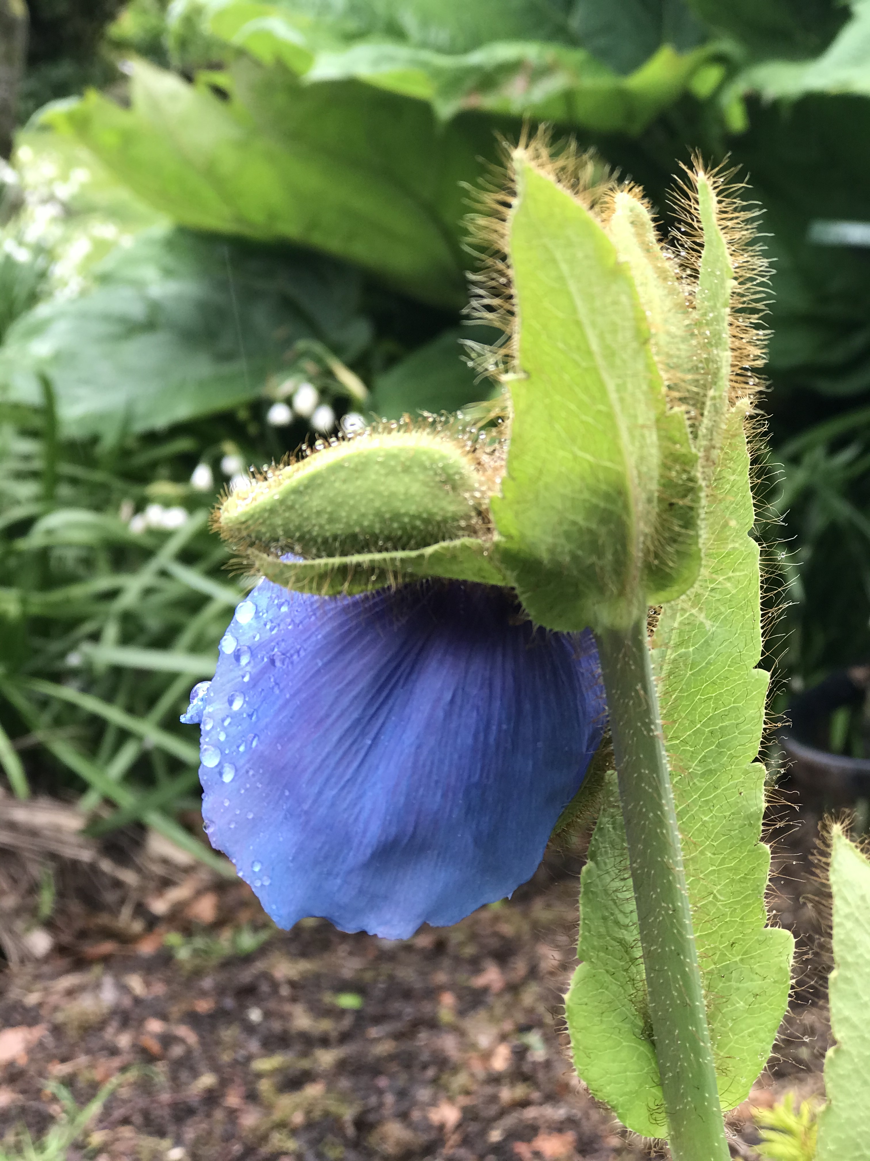 I gather that the Meconopsis has many named varieties and that these are often shrouded in debate as to provenance. I’ve read that the blue poppy was first cultivated by the French botanist Viguier in 1814. Privately, of course, I intend to call my new arrivals Meconopsis Pennylandis, after the lovely burn that runs by them.