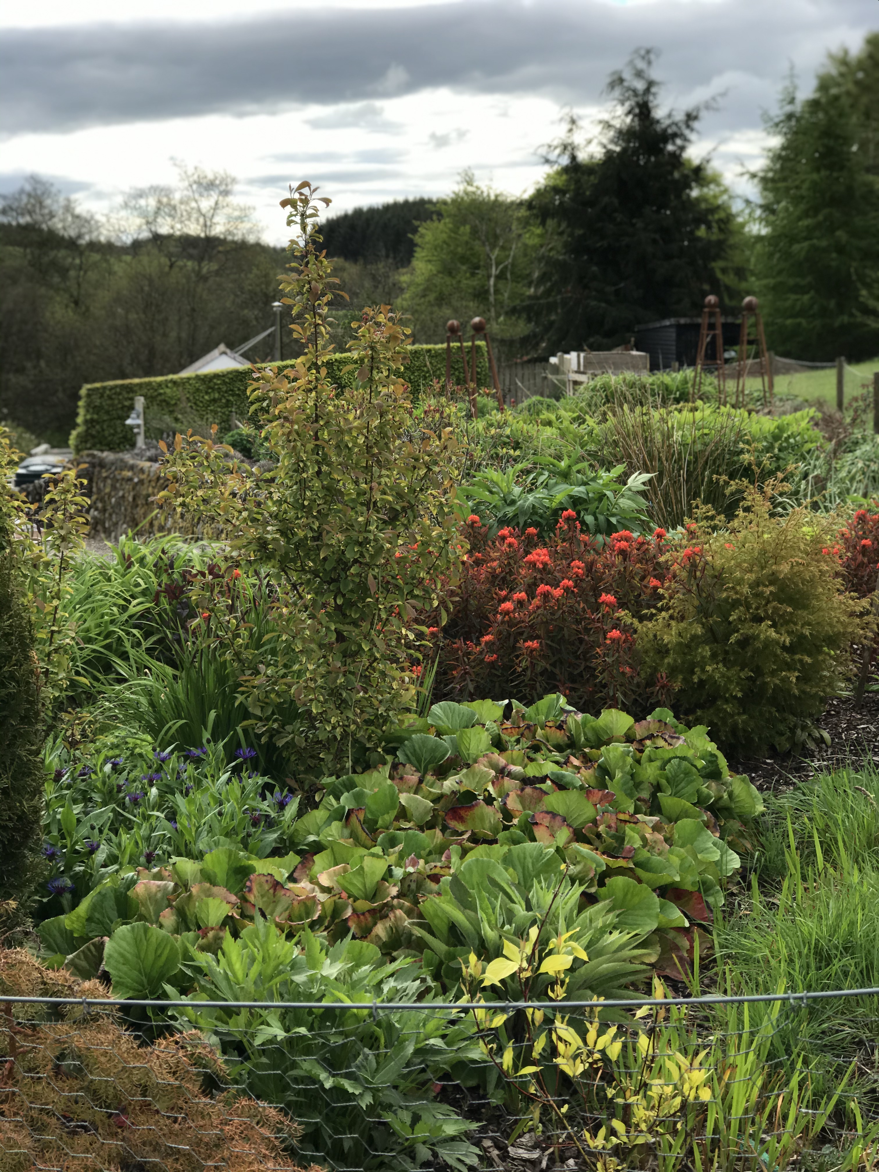 But now, I realise, the status of this particular spot has changed. This patch, so full of potential, has become the new centre of a garden that has suddenly turned around on its axis. Quite simply, it is where we spend most outdoor time, where most opportunities occur for looking at the garden and where the temptation to do a bit of planting, weeding or pruning is most likely to manifest itself. In short, it is the new focus of Dumfriesshire Garden interest.