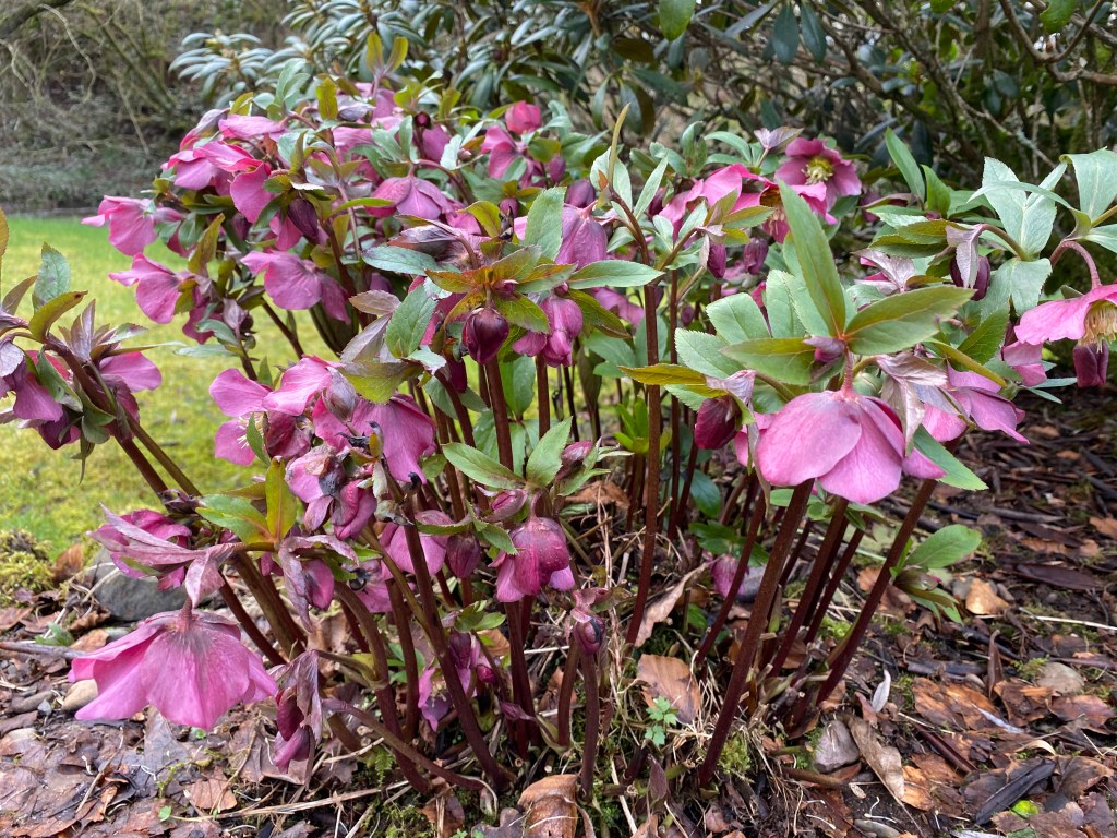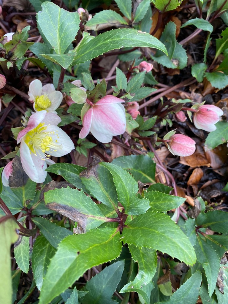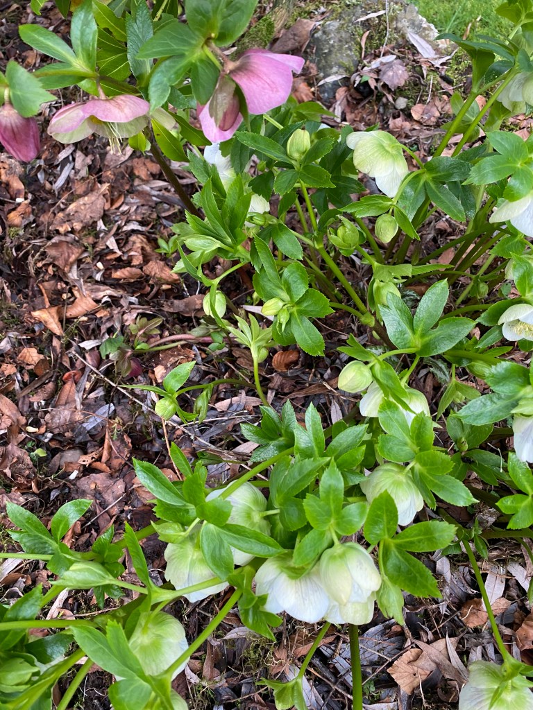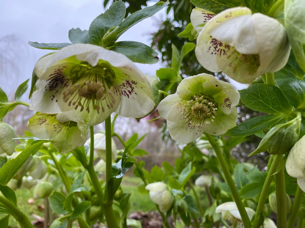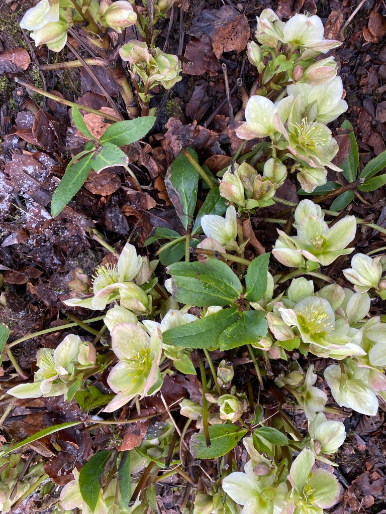 The early morning scene, though beautiful, brings a sense of disappointment. Many flowering plants are dipping their heads in mourning. Narcissi of all persuasions, short and tall, look funereal in their stooped posture. Hellebores lay in flat fans on the frosty ground, awaiting the sun’s CPR. Ceanothus, magnolias and early azaleas suffer most, their leaves blackened and emergent blooms cut down before their time.