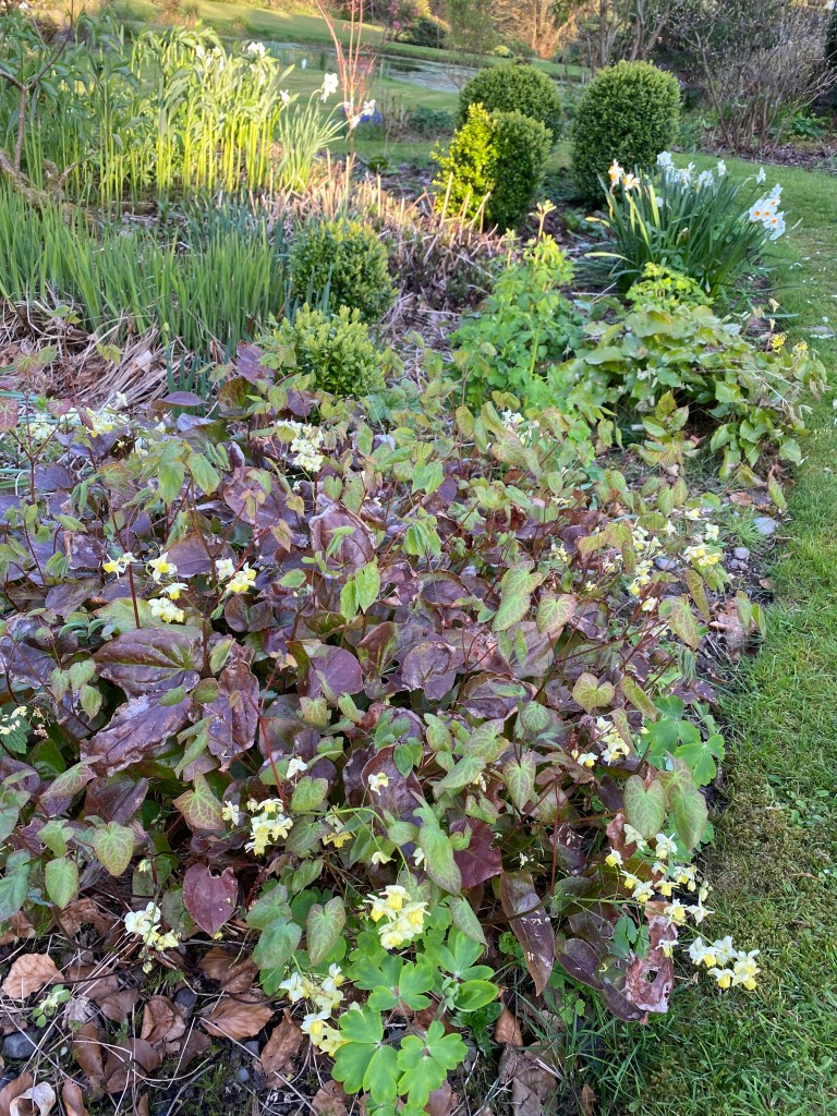 Elsewhere spring bulbs are appearing in droves, nudging through the leaf mould raked over them last autumn. A few more days and it will be reckless to tread in these borders.