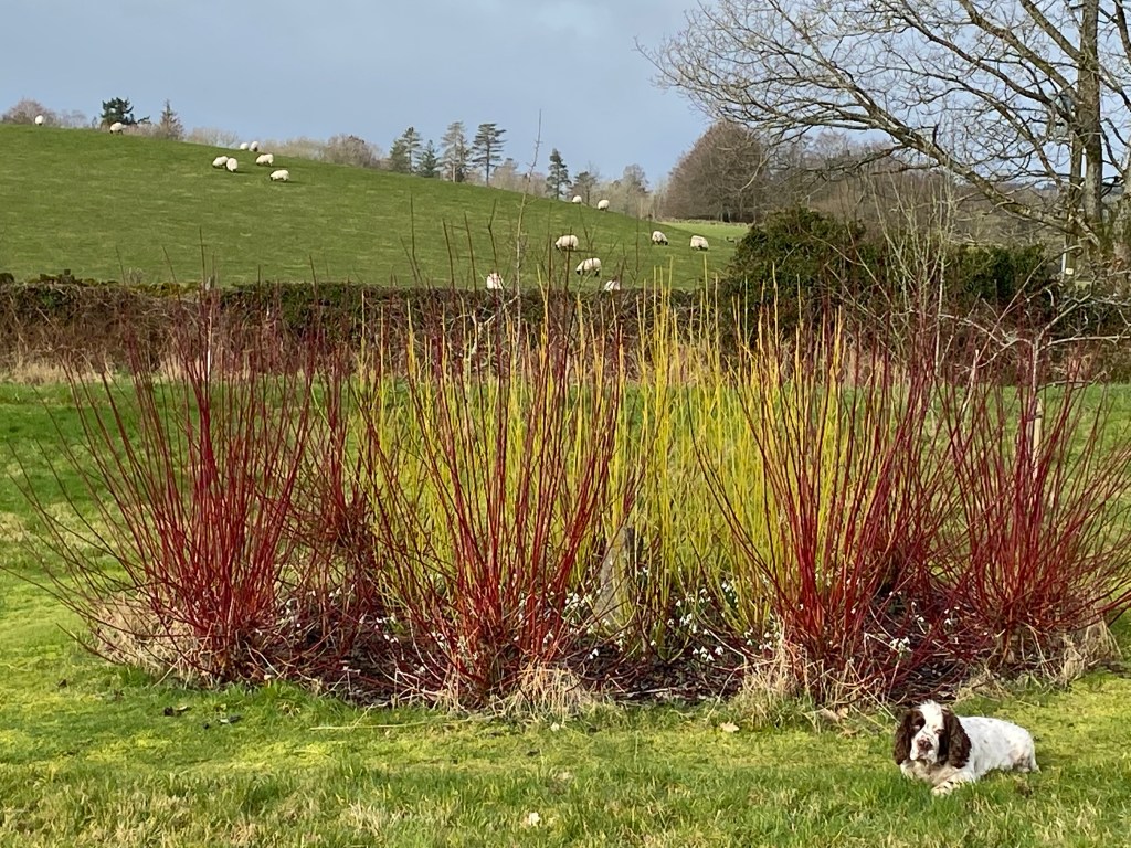 I love dogwoods. Never mind that someone once told me they belong only in car parks and on roundabouts. They are welcome in my garden. Their gorgeous cut stems will continue to bring pleasure in the coming weeks. They will give an artistic air to the dead hedge. I’ll strike cuttings from a few of my favourites. Some I’ll bring into the house to sit in a large glass jar filled with water and pebbles, where they will open out in sharp green blades and be ready for decoration at Easter.