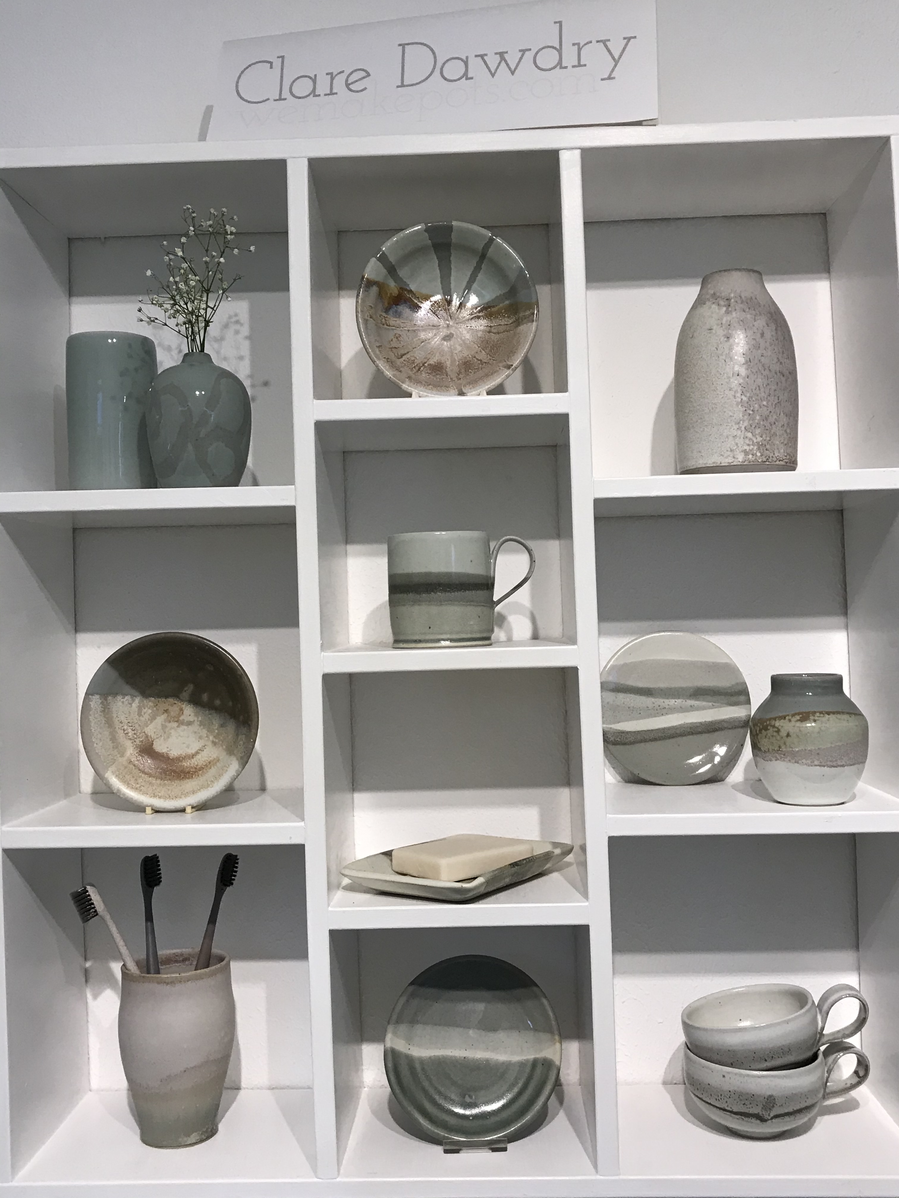 Each year since we have gone back to ‘We Make Pots’, almost always on the first morning of the Spring Fling event. Our welcome seems to grow in emotion as time passes. We have also attended various one off openings in winter and made visits on other occasions. For us it has been a journey of discovery, as Clare’s preferred colours, glazes, finishes, forms and styles have evolved over time: never dramatically, but always with an assurance that her creativity is a precious thing to be nurtured and given space.