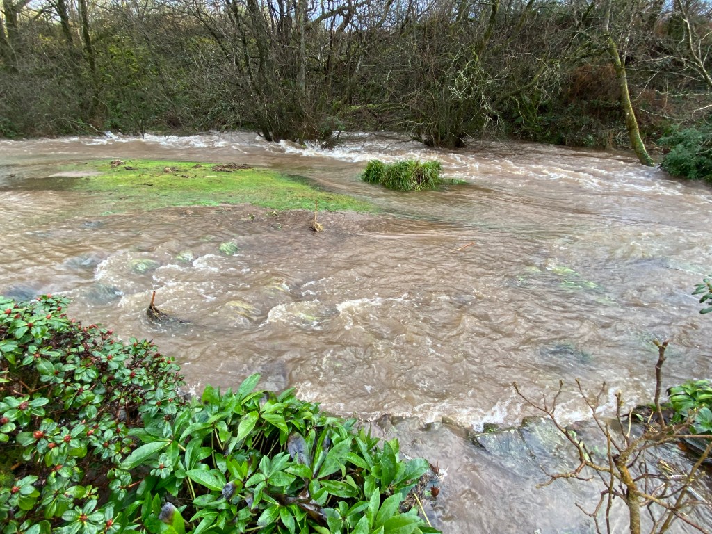 On the night of 29/30 December it rained heavily and continuously, hammering on the slate roof in the darkest hours of the pre-dawn. We woke up to a roaring Pennyland Burn that was already bursting its banks, flooding into the garden pond and then back into the main watercourse further downstream. A whole section of the garden was dangerously impassable, engulfed in water moving at speed.