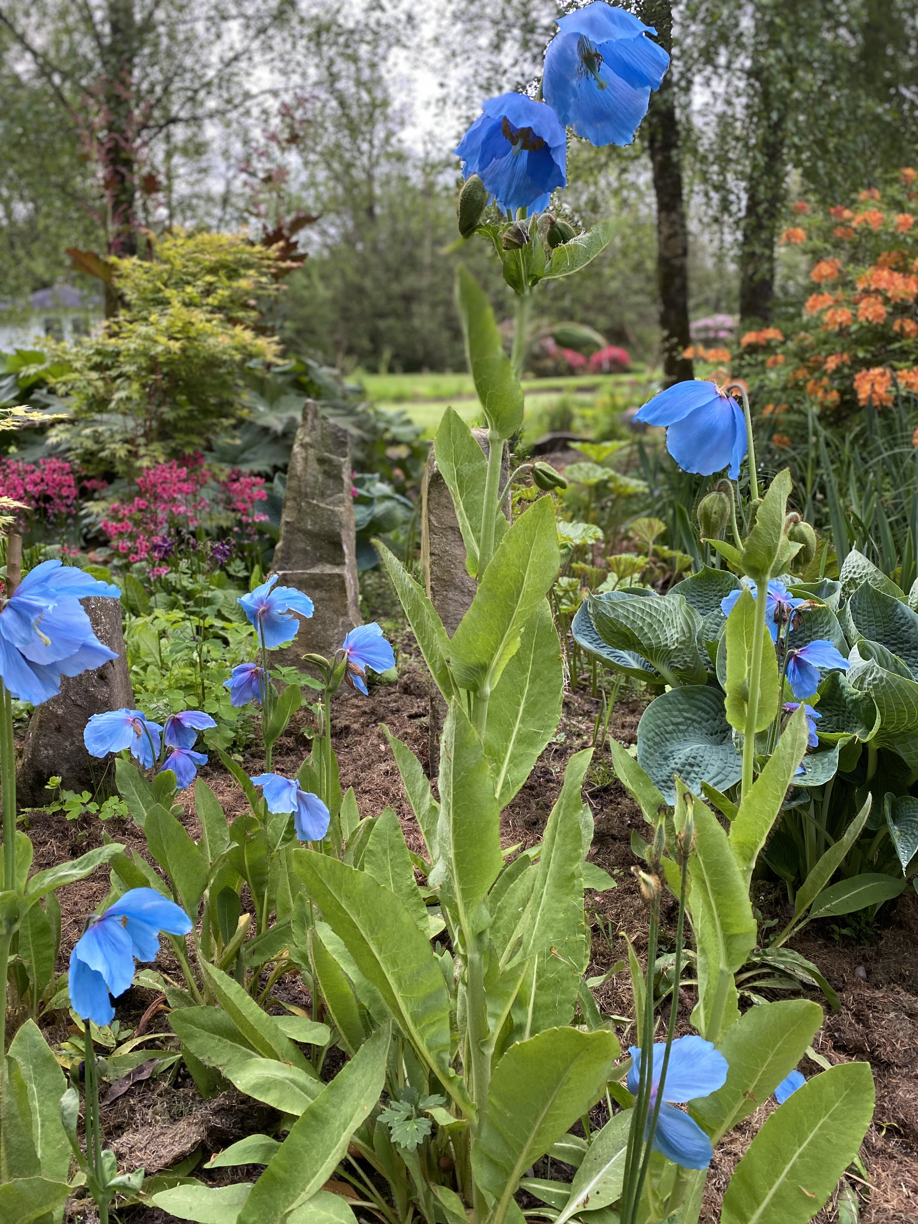 I’ve read that the blue poppy was first cultivated by the French botanist Viguier in 1814. I also understand that the Meconopsis has many named varieties and that these are often shrouded in debate as to provenance. Some do not set seed at all and have to be multiplied by plant division. Informally, I have named my home-grown friends Meconopsis Pennylandis, after the lovely Dumfriesshire burn that runs past them.