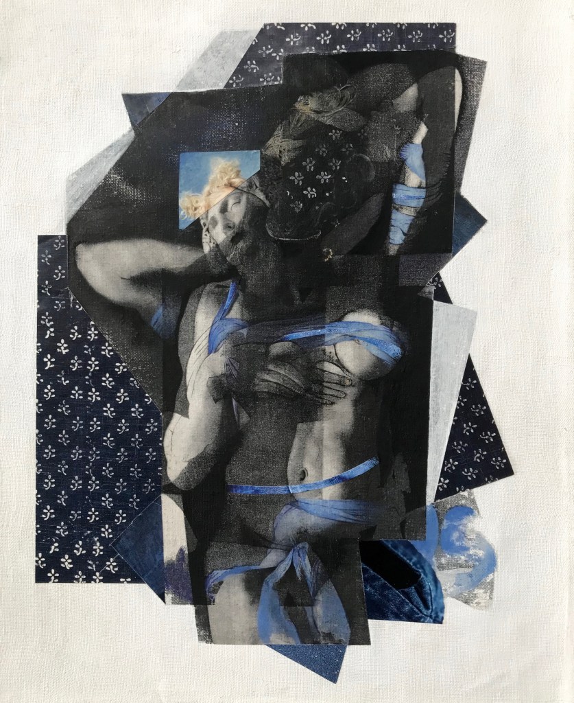 I joined the Arusha Gallery, Edinburgh in 2016 and have shown work with them in their gallery and online. In 2018 I had a small solo show there with large works on canvas, using transfer printed collages of my body mixed with classical sculpture.