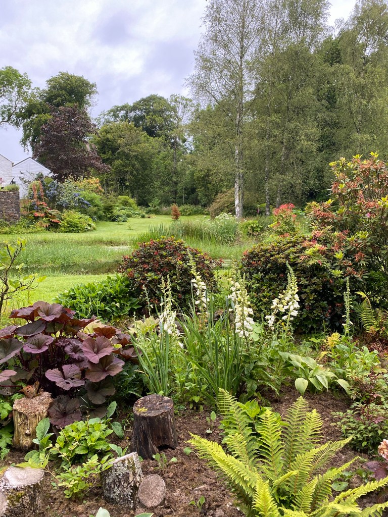In a work-in-progress new border, the white foxgloves, grown from seed last year, were very striking and shone out in the evening light. Their backdrop here is a scene of quiet symmetry, creating the calming mood of the garden that is so rewarding.