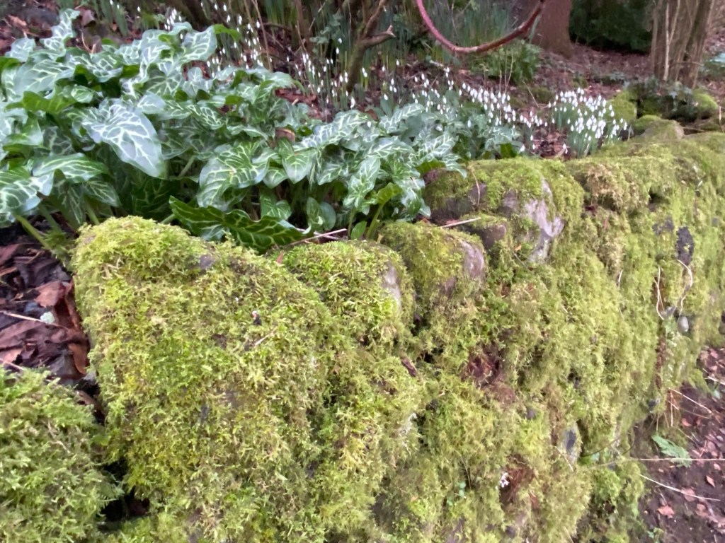 But what about in our own gardens. Can moss serve the same purpose, even on a micro scale? Just as we plant trees in our gardens for environmental reasons, should we be protecting and encouraging our garden mosses? I don’t know the answer to this. But for the last three years there has been no use of moss killer in the Dumfriesshire Garden. One result I noticed immediately in the first year was just how the moss shone bright and green in the winter months, even as the grass it is pushing out looked dull and listless.