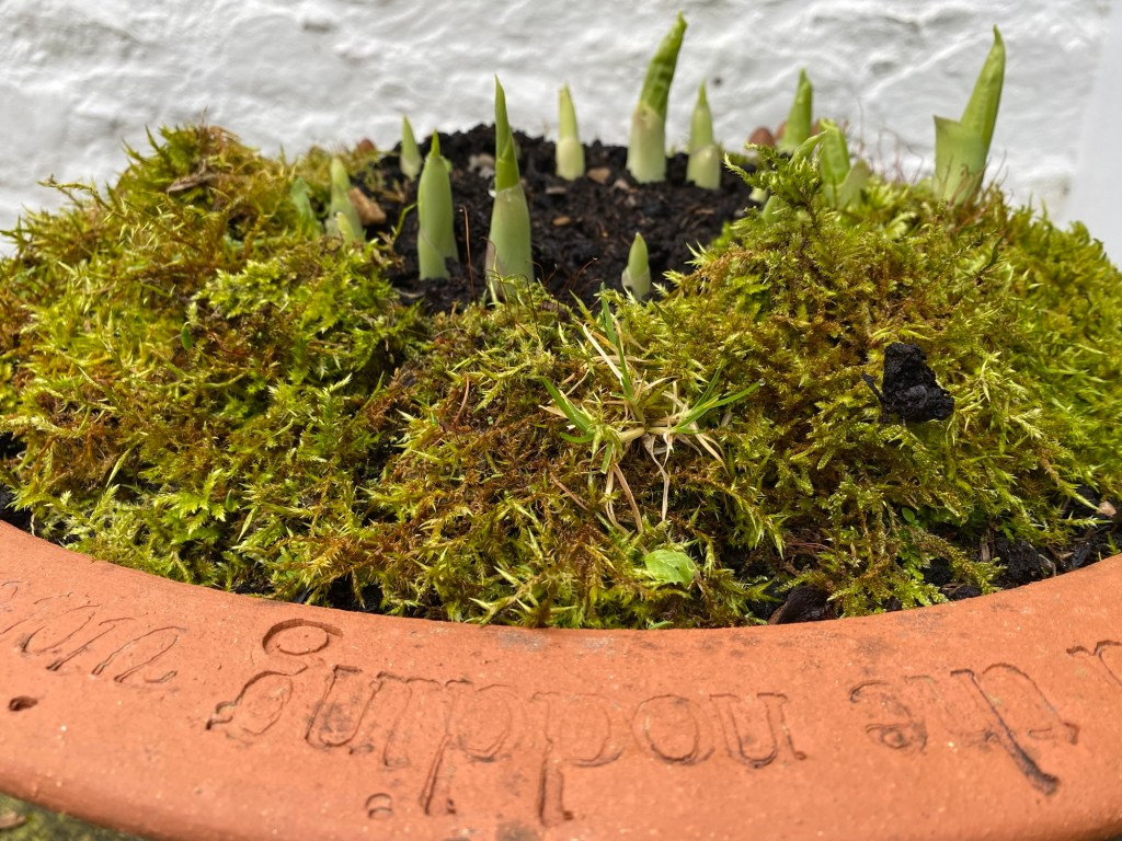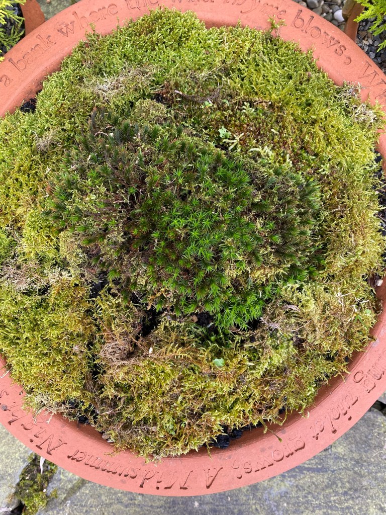 I’m now resolved to learn more about the mosses that live in the garden. I’ve also taken to using them on pots of spring bulbs, where they provide a bit of frost protection and a beautiful backdrop to the emerging plants.