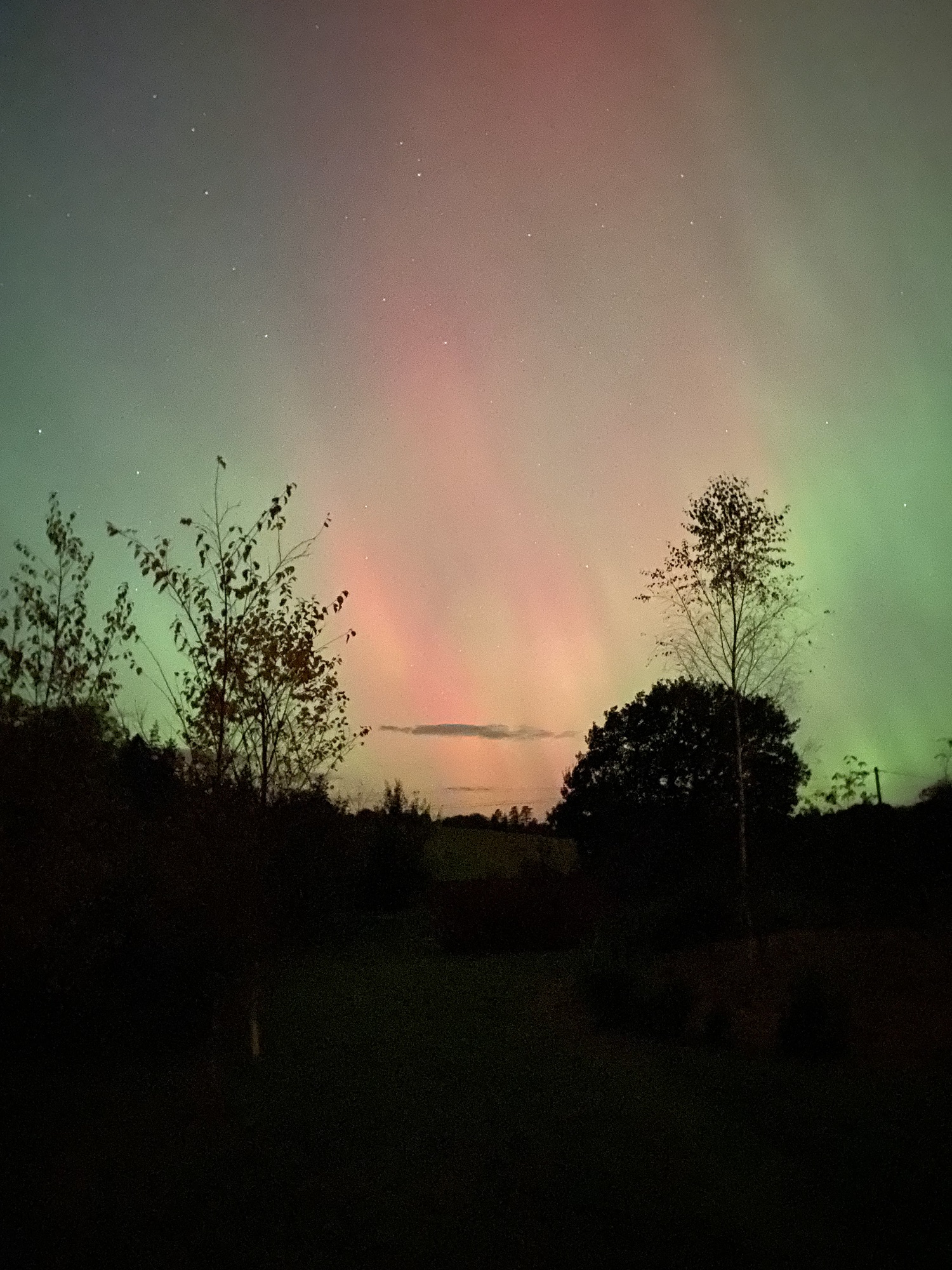 This entry in my A-Z series is really here under false pretences. There is nothing even remotely horticultural about it. The reason for its inclusion is simply this. On the night of 10th October 2024, we got wind that the aurora borealis might be visible in our part of the world. A quick look out of the window was enough. Pulling on hats and coats we rushed out of the house and up to the highest point in the Dumfriesshire Garden, among the trees and rocks of the arboretum. It was the perfect vantage point, as you can see here!