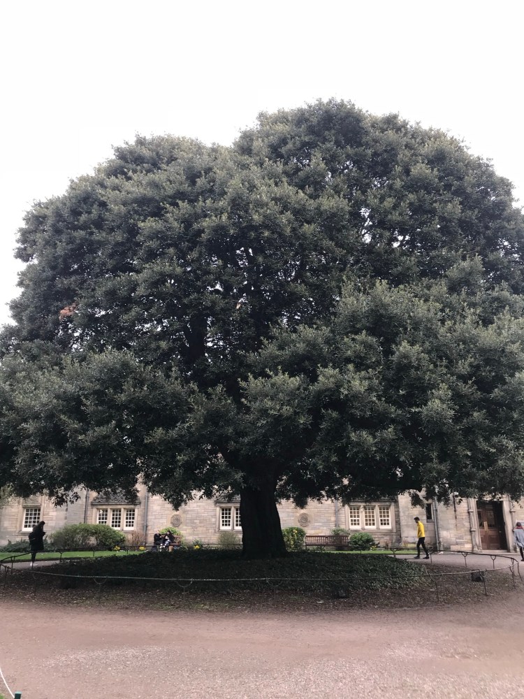 Oh and by the way, here below is a picture of the St Andrew’s Holm Oak, taken by me in 2019. Thought to have been planted about 1740, its short trunk is 12 feet in girth. Apparently it suffered some storm damage to its crown about 20 years ago and had to be pruned heavily at the time, but quickly put on new growth. Its toughness bodes well for my Dumfriesshire Garden specimen.