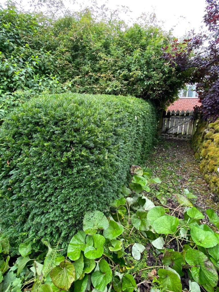 Recently I have discovered a faster growing alternative holly and yew, in the form of lonicera nitida. This tough plant not only establishes itself quickly, but cuttings that fall to the ground from the shears are quick to take root, thereby providing a steady supply of new cuttings which can be brought on in pots before planting out around the garden. This lovely lonicera ring, seen below, surrounding a garden table and chairs was planted in spring 2020 and is already one of the most striking feature in the garden. So topiary may not be the long game that many people think. I am certainly planning more creations, and using home grown material to create them.
