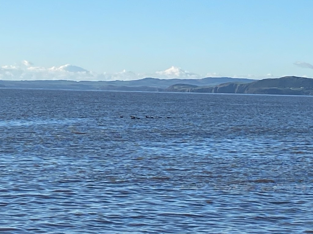 Wading birds – knot and dunlin – collect on the littoral. We watch them lift in small groups. Then comes a long column in an extended fly past. Difficult to capture on a smart phone. ‘Stay in the moment’ my daughter says, as the squadron passes to our left and lands in the bay beyond.