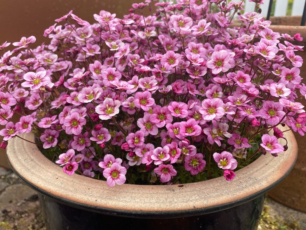 It’s certainly not the weather for planting things out, so I press on with seed sowing. The greenhouse is now full to the gunnels with newly sown trays and pots. Among them are four varieties of meconopsis, the quickest out of the blocks being the home gathered ‘Pennylandis’ variety. Alongside are foxgloves, lavender, lupin and the much-loved cosmos. I’m also pleased with the strong growth of some cardoons, gathered from a Perthshire garden. This year I have bought in three dozen plugs of Hidcote lavender. Potted up soon after arrival in home made compost, they quickly settle. I’m hoping to set them out along the wall in the south-facing big border, where they will replace plants gone straggly or lost to bad weather. The high summer lavender display there is always noted by visitors as they come down the track to our home.
