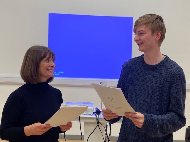 28th September 2022: At an evening event organised by Highland Hospice, in Inverness, Scotland a ‘taster’ from the play was read by two drama students at the University of the Highlands and Islands. After an inspiring opening talk by best-selling author Dr Kathryn Mannix, on ‘Tender Conversations’, Juliet Kelly and John Moar read scene 1 from the play to excellent effect. The scene is itself a conversation of great tenderness between the ageing Cicely and a newly bereaved father. Following thunderous, sustained applause and cheers from the capacity audience, there was much praise for the performances and several enquiries about further opportunities to see the play. Huge thanks to Juliet and John.