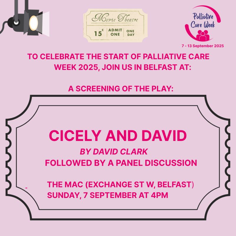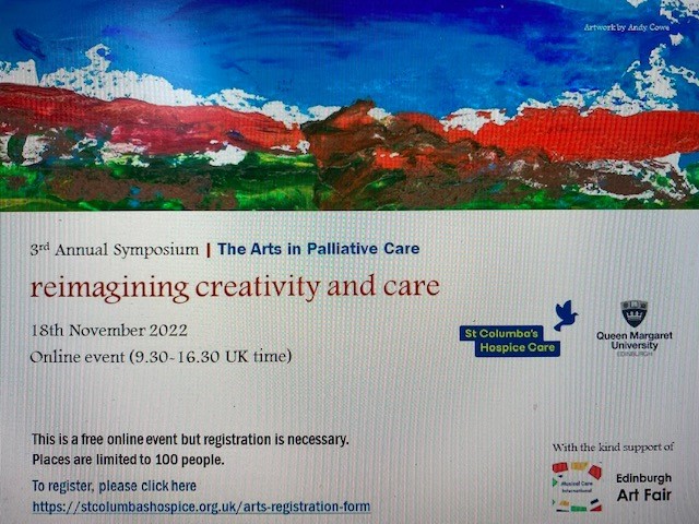 18th November 2022: We had the honour to host an online screening of the full ‘Cicely & David’ play followed by an open discussion with David Clark and Jo Hockley. The screening took place as part of the 3rd Annual Symposium for the Arts in Palliative Care which was co-organised by St Columba’s Hospice Care and Queen Margaret University in Edinburgh and which focussed on the theme of Re-imagining Creativity and Care. This was the third annual event of its kind, bringing together arts therapists, socially engaged artists and other professionals from the wider palliative care field internationally.
