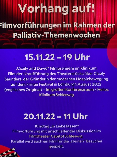 15th November 2022 As part of a two week programme of activities to launch a new palliative care service in Schleswig, Germany, Dr Georg Bolig hosted a screening of the play (its global premiere!) in the Helios Klinikum (University Hospital of the Universities of Kiel and Lübeck). Dr Bollig wrote: