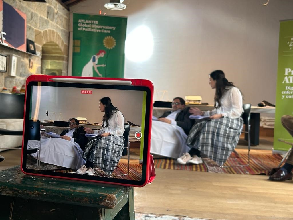May 30th 2025 – EAPC World Congress of Palliative Care, Helsinki: A screening of the Spanish production of the play, with English subtitles, was introduced by Carlos Centeno, Director, ATLANTES Global Observatory of Palliative Care and Vilma Tripodoro, Senior Researcher, ATLANTES, and Director of the theatre group that has performed the play on four occasions in 2025.