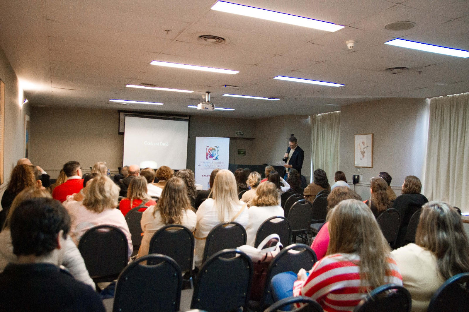 Dr Gabriel Goldraij introduces the film of Cicely and David to the conference audience in Cordoba.