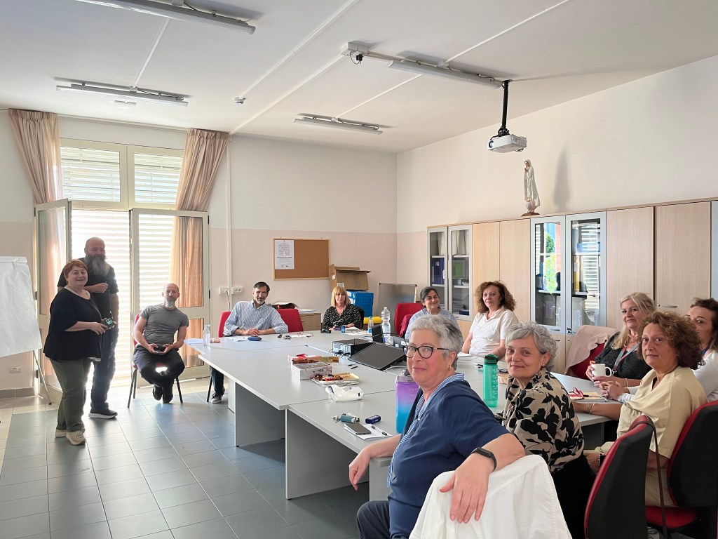 The morning after, from 8 to 12,30 a.m. we had the second session with other professionals who had been working on the Friday afternoon. It was a very intimate and personal meeting, very participatory, and I’m very grateful to all for the reciprocity in training and for walking together on the same path. At the end, one of the participants told me that she was not so convinced about coming, especially on a Saturday free from work, but that she had changed her mind, and was very happy to be there with us! Another person commented that she had discovered again the deep motivations of working in the palliative care field and the value of refreshing those motivations periodically’.