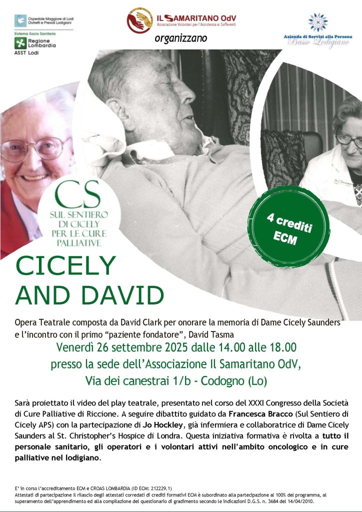 15th November 2025 Screening of Cicely and David with Italian subtitles at the Applied Narrative Medicine and Health Masters class, in Istud Business School , Milano. Francesca Bracco will lead the sessions. Full details here – https://www.medicinanarrativa.eu/master-medicina-narrativa-applicata
